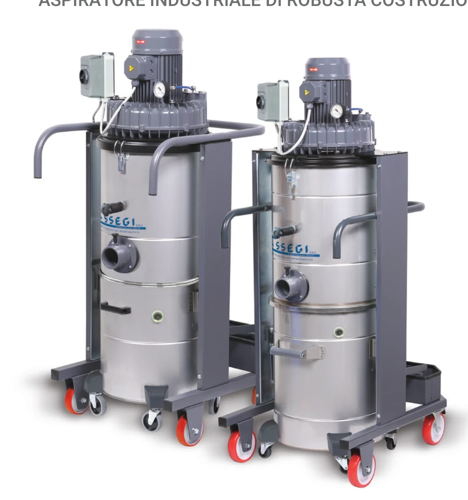 ASPIRATORE INDUSTRIALE DI ROBUSTA COSTRUZIONE. Aspiratori industriali monofase con 3 potenti motori a 2 stadi bypass. Manutenzione esternamente semplice: facile rimozione di entrambi i contenitori per facilitare le operazioni di svuotamento e pulizia del filtro. Ideali per l'eliminazione dei detriti e polvere provenienti dalle superfici di lavoro delle fabbriche e officine. Innovativo sistema incorporato di autopulizia del filtro che aiuta a mantenere il filtro più pulito durante normali lavori di pulizia con un livello moderato di polvere. Scuotifiltro manuale per la pulizia del filtro in dotazione con tutte le macchine. La vasta gamma di accessori e filtri permettono la rimozione di ogni tipo di polvere e liquidi. Ideale per l'utilizzo con le unità di lavoro fisse o mobili, collegato a seghe elettriche, sabbiatrici, levigatrici etc. Eccellente per cantieri edili, per la pulizia delle auto, officine meccaniche, fabbriche di lavorazione del legno, e in tutte le fabbriche e officine industriali.