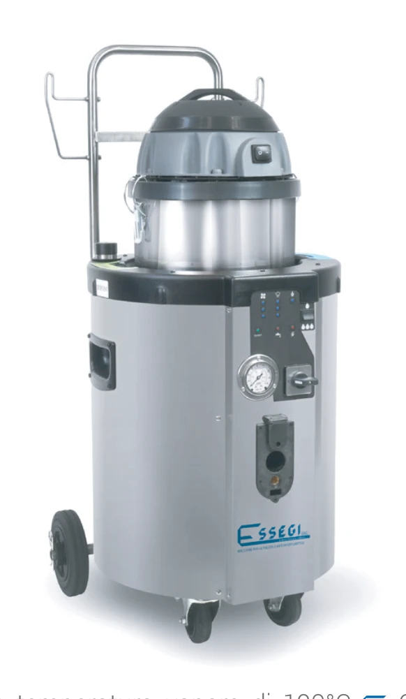 PULITORE A VAPORE E ASPIRAZIONE PROFESSIONALE MONOFASE. Pressione nominale di 10 bar e temperatura vapore di 190°C. Caldaia in acciaio inox AISI 316. Produzione vapore: flusso continuo con sistema riempimento automatico per possibilità di lavoro 24h no stop. Regolazione vapore/aspirazione a tre livelli effettuabile dall'impugnatura della pistola ed indicazione LED a bordo macchina. Funzione iniezione detergente ecologico in combinazione con il getto di vapore per una profonda pulizia e disinfezione. Funzione iniezione acqua calda/idro (ID) dalle altissime prestazioni. Pulitore top di gamma monofase: robusto, performante ma, allo stesso tempo, facile da trasportare grazie alle maniglie ad incasso laterali, al maniglione di spinta posto nella parte posteriore della macchina ed alle 4 ruote (2 piroettanti) robuste ed antitraccia. La macchina produce vapore secco, saturo, di qualità ed è in grado di sanificare ed igienizzare molteplici superfici. L'intelligente gestione della componentistica interna e la ripartizione della potenza dell'apparecchio permettono un forte risparmio energetico. Ampia gamma di accessori per la pulizia di qualsiasi ambiente.